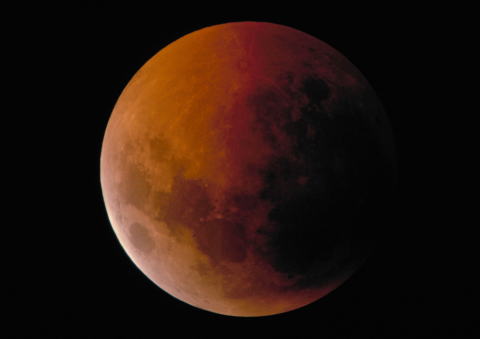 | 皆既月食の地球照 | 地球の影にすっぽりと入ったお月様はこのように赤く見えます。 |